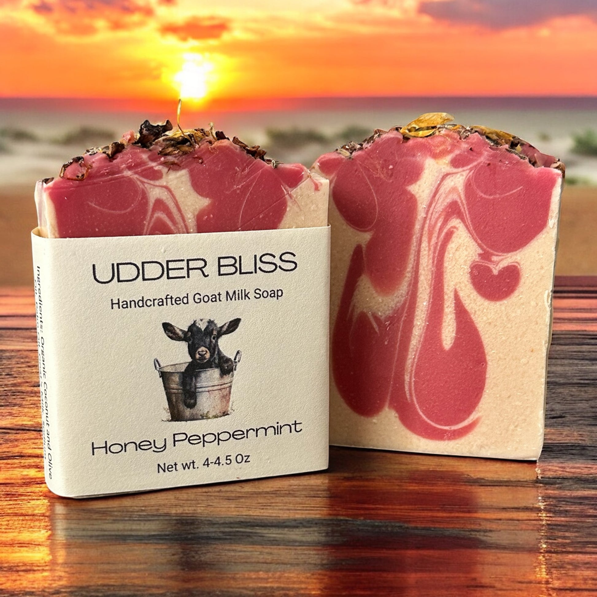 We make our Honey Peppermint goat milk soap with natural ingredients and prepare it in small batches. Since we make all of our soaps by hand, each batch varies from the rest. You may receive a bar that doesn't look quite like the one pictured.